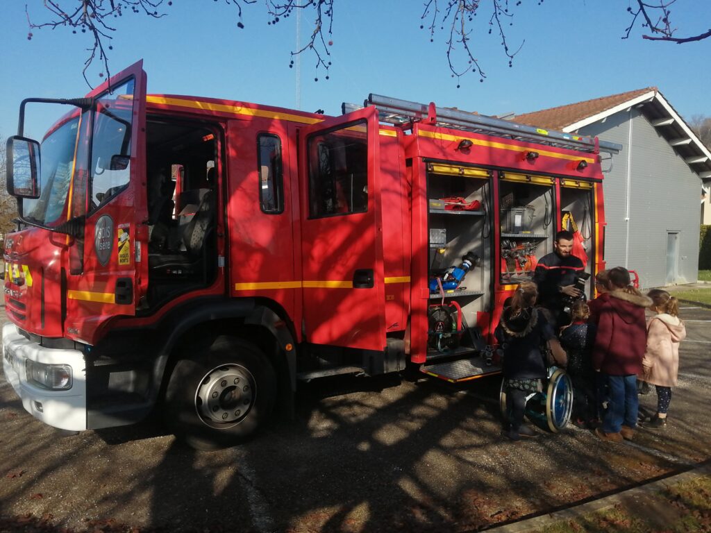 Nous avons passé deux heures passionnantes en compagnie des quatre pompiers bénévoles qui nous ont accueillis. Ils nous ont raconté l’organisation de la caserne et leurs différentes missions, nous ont montré leur tenue et tout leur matériel d’intervention. Nous avons particulièrement pris le temps de découvrir les deux véhicules principaux : l’ambulance et le fourgon pompe avec toutes ses lances. Ils nous ont aussi expliqué ce qu’il fallait dire au téléphone quand on appelait les secours.